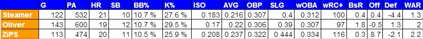 Oddly enough, it’s ZiPS, the Debbie Downer of projection systems that has Granderson playing the best and having the highest fWAR, despite playing the least amount of time. Again, it’s important to recognize sample sizes in this. Adjusting to 650 plate appearances, Granderson hits 26, 21, and 27 home runs according to each projection. His fWAR would also come out to 1.6, 2.2, and 3.0 respectively. I’m willing to take the over in each of these categories. The projection systems see two injuries from Granderson, specifically hand injuries, and may adjust not only sample size, but also quality of the numbers, depending on the injury. That, and I’m just optimistic that the Mets lineup will get him more plate appearances than expected with an improved lineup.