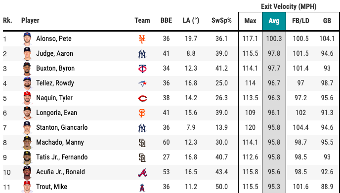 Pete Alonso‘s Exit Velocity