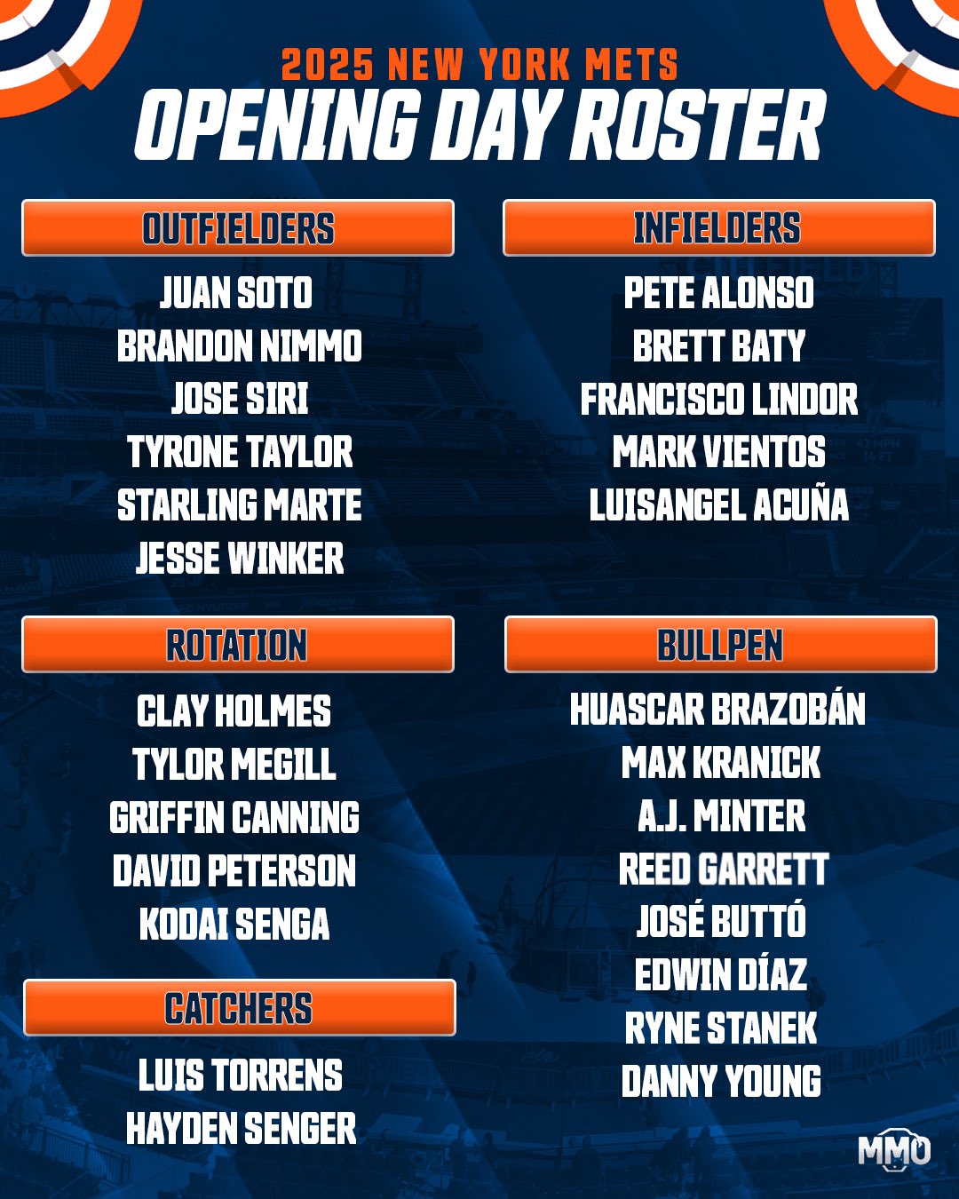 The graphic below shows the Mets’ expected 2025 Opening Day roster, though the Mets have not officially announced.