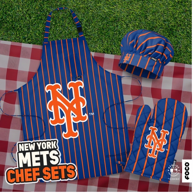 Elevate your Father’s Day feast to a whole new level with the New York Mets Pinstripe Chef Set. Whether it’s grilling in the backyard or serving up snacks on game day, this set has got Dad covered in style, from kitchen to table.