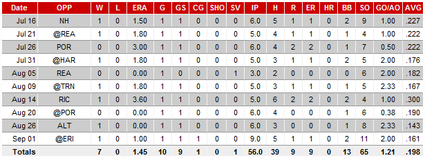 The 24-year old prospect has allowed two runs or fewer in 10 consecutive starts, and finishes his Double-A debut with a sparkling 2.89 ERA – fourth-best in the league. Since the All-Star break, McHugh was 6-0 with a 1.53 ERA and one save.