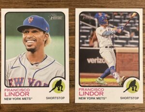 (L-R) Francisco Lindor 2022 Topps Heritage base set card and the image variation card.