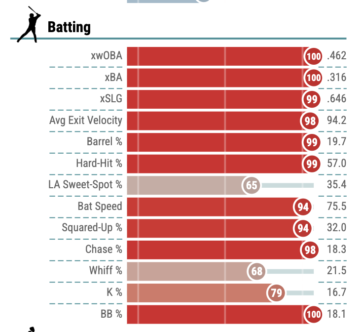 His Baseball Savant page in 2024 was a sea of red.