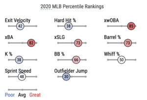 Per Fangraphs data, the biggest concern was likely his hard-hit percentage, which clearly dipped from 2018/2019 levels in the shortened 2020 season. Interestingly, though, his soft-hit percentage also took a dip: