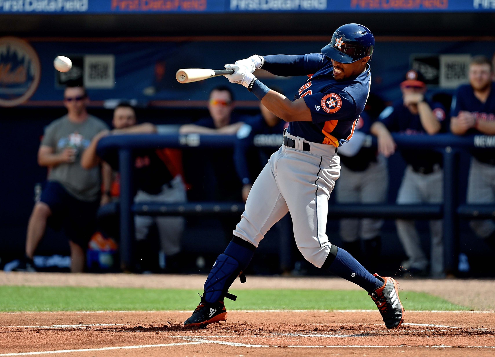 Using a 15-hit attack and solid pitching, a split-squad of Houston Astros defeated the New York Mets 10-1 at First Data Field in Port St. Lucie. The loss dropped the Mets to 1-1 this spring. Chuckie Robinson hit a three-run home run for the Astros as part of a six-run sixth inning to put the game away for Houston.