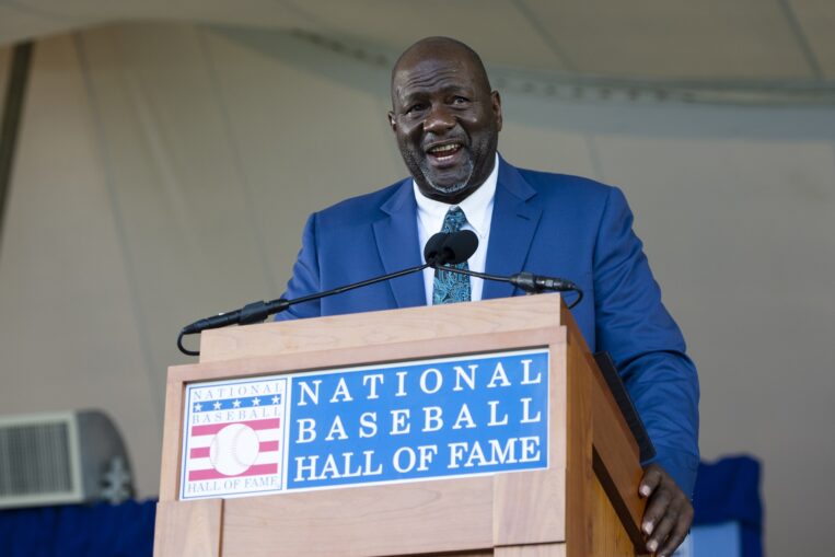 In his stoic manner, Baines spoke for just under ten minutes. He became emotional when referring to his wife, Marla, saying, “I’m not an emotional man, except when it comes to family. You are the true Hall of Famer of our family,” Baines turned to his spouse during the speech and added , “… Your presence here makes my journey complete.”  After the speech he told MLB.com, “I get very emotional when I talk about family. Because my kids say I cry too much and I wanted to be strong for them.” But he, and many in the assembled throng, broke down anyway.