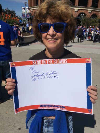In February of 2019 she had plans of going down to Mets Spring Training, until she found out that she had breast cancer. Both the Mets season and support she found from a Mets Facebook fan page, helped her in her battle and reassured her that she was going to be okay.