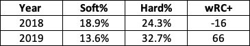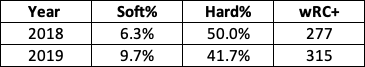 So with that in mind, it was imperative for him to make the most of the contact he was making, and more specifically, the batted-ball events that didn’t result in ground balls. His season-long stat line suggests he accomplished that goal, and the peripherals check out, as well. Here’s a look at how his batted-ball profile improved in certain areas between 2018 and 2019: