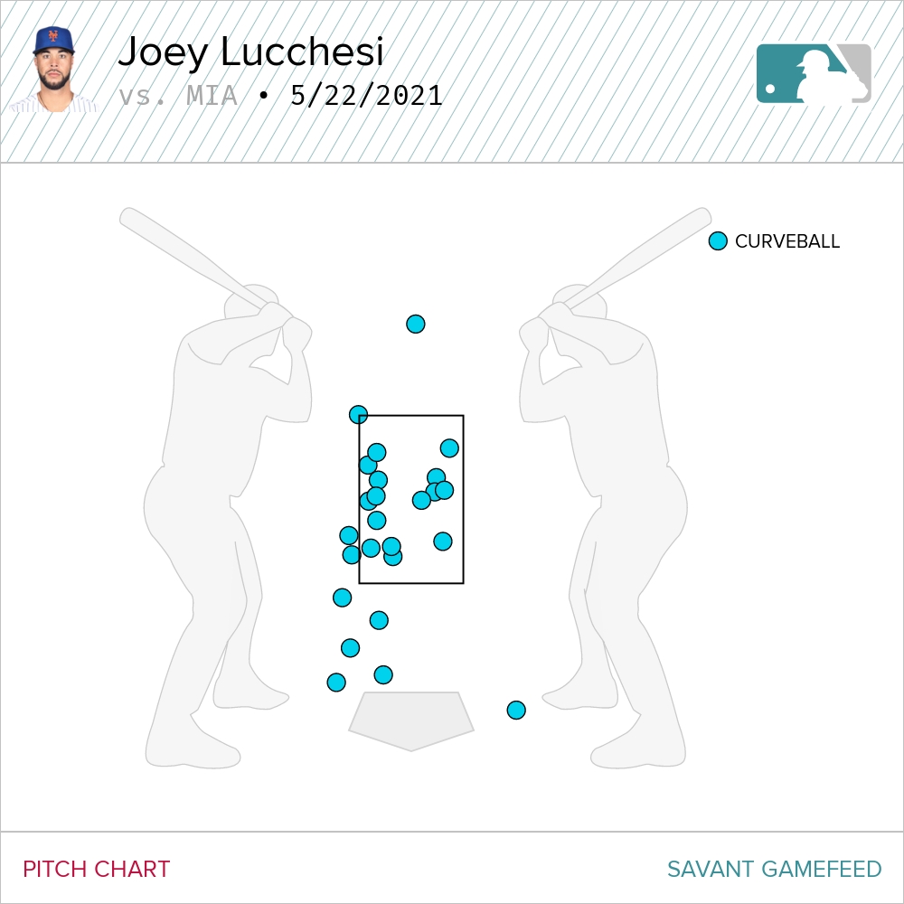 So what adjustments did Lucchesi make this past weekend? For starters, he did an excellent job of working ahead early in counts, as the lefty recorded first-pitch strikes to 11 of the 12 batters he faced. Along with being efficient, the Southeast Missouri State standout was also extremely effective with his high-70s churve, allowing him to throw it a season-high 60.5% of the time.