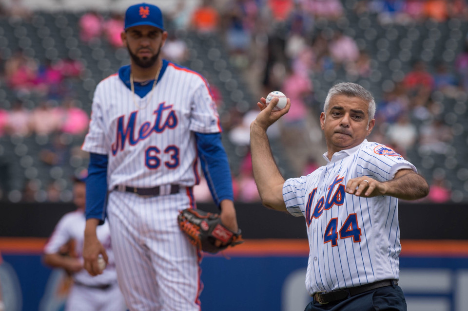 During a trip to the United States last week, London Mayor Sadiq Khan met with New York Mets owner Fred Wilpon, and threw the first pitch at a game against the Twins.