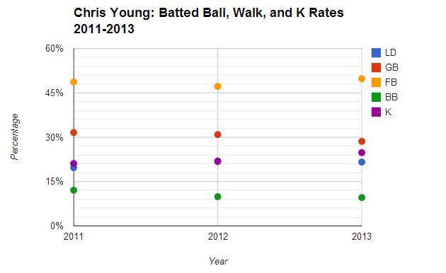 In comparison to other deals being signed, this one is a bargain. Marlon Byrd signed with the Phillies for two-years and $16 million, with a third year vesting option. Keep in mind that Byrd turned 36 in August and put together what was likely somewhat of a fluke. His .847 OPS was the highest of his career. That’s not sustainable for a 36 year-old, even in the bandbox that is Citizens Bank Park. Cody Ross signed a three-year, $24 million deal with the Diamondbacks last offseason going into his age 32 season. Keep in mind that Ross has a career OPS+ of just 105 (and a 106 wRC+), meaning he is only five percent above average at the plate.While Young is slightly below average for his career in terms of wRC+ and OPS+, he brings so much more to the table on the basepaths and with his glove than Ross. In his best season, Ross had a 3.5 fWAR, while Young’s best is 4.5. Even Ryan Ludwick, in the middle of a rapid decline, got two years and $15 million before his age 34 season. Both of these players were older than Young and got more money, despite being as good at best as Chris Young.