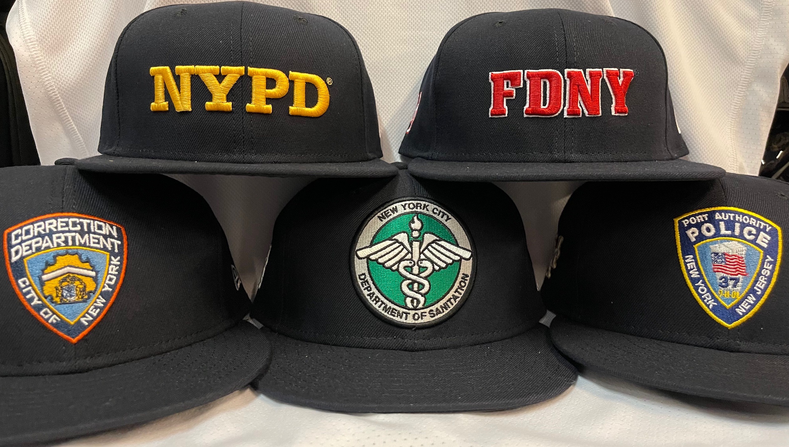 First responder hats worn by Mets and Yankees players, via Mets’ Twitter.
