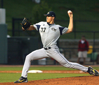 Georgia Tech left-handed pitcher Jed Bradley is projected by many to go in the top-15 picks of the 2011 MLB draft. After scouting Bradley, I have no qualms about placing him among the better left-handed pitchers I’ve ever had the opportunity to scout. If I’m an organization looking for a fast moving starting pitcher who could potentially contribute within a year, Bradley would be a fantastic choice. In an odd draft deep in left-handed college pitching, Bradley may wind up being the 3rd to go behind Danny Hultzen and Matt Purke. Just understand the selection is more a product of a strong class as Bradley has the stuff to be the first lefty selected most years. – Mike Newman, Scouting the Sally