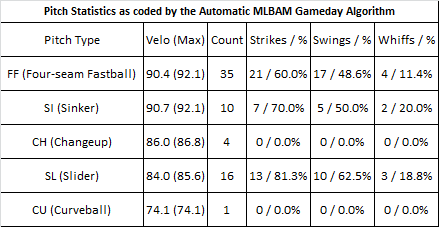 Win Probability Chart courtesy of FanGraphs. Detailed pitching data courtesy of Brooks Baseball.