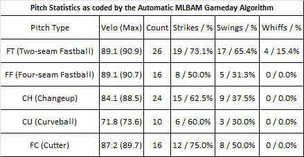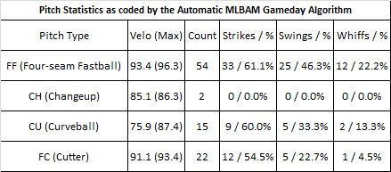 Win Probability Chart courtesy of FanGraphs. Detailed pitching data courtesy of Brooks Baseball.