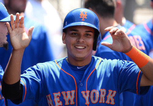Wilmer Flores doubled him in for the Mets eighth run of the day.