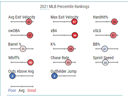 But 2021 was an example that 2019 could happen again. He had bad luck with a hamstring injury that was caused by him trying to leg out a single in April and then later dealt with a nagging issue in his other hamstring. Still, his box score slash was spectacular in 90 games at .318/.377/.532 with an OPS+ of 143.