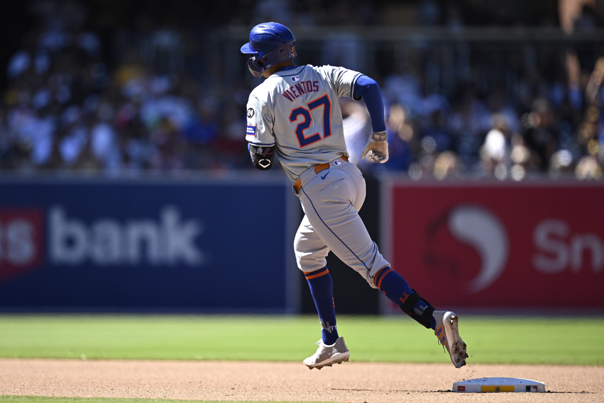 After clinching the season series victory over the San Diego Padres, the Mets lost 3-2 on Sunday to split with the Padres in their first series of this 10-game road trip. They led 2-0 in the eighth after getting 6 1/3 strong innings from José Quintana, but José Buttó coughed up a game-tying two-run homer and Edwin Díaz surrendered a walk-off shot to Jackson Merrill.