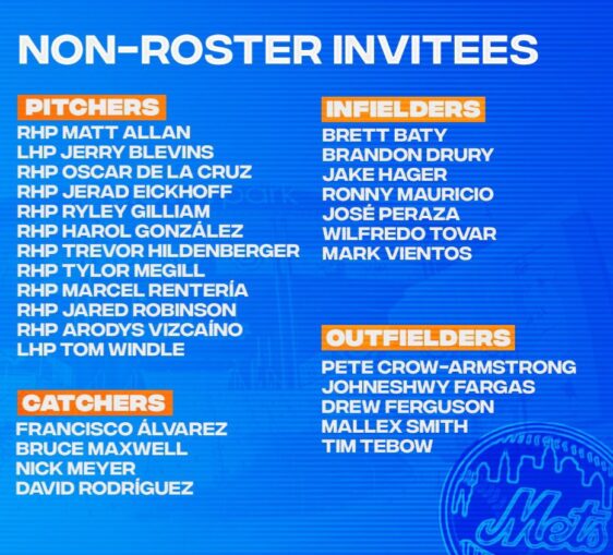 The Mets announced their non-roster invitees to spring training on Saturday.