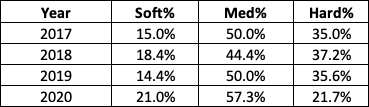 Check out how his soft-, medium-, and hard-hit rate has compared over the years since 2017.