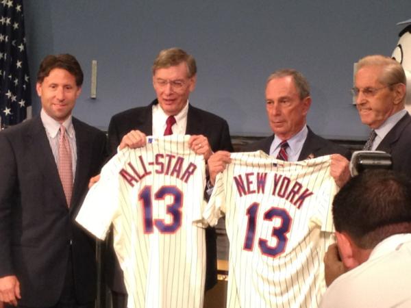 The Mets have been awarded the 2013 All-Star Game announced MLB commissioner Bud Selig today at a press conference at City Hall. In addition to Selig, Mayor Bloomberg, Fred Wilpon and of course Mr. Met were on hand for the announcement.