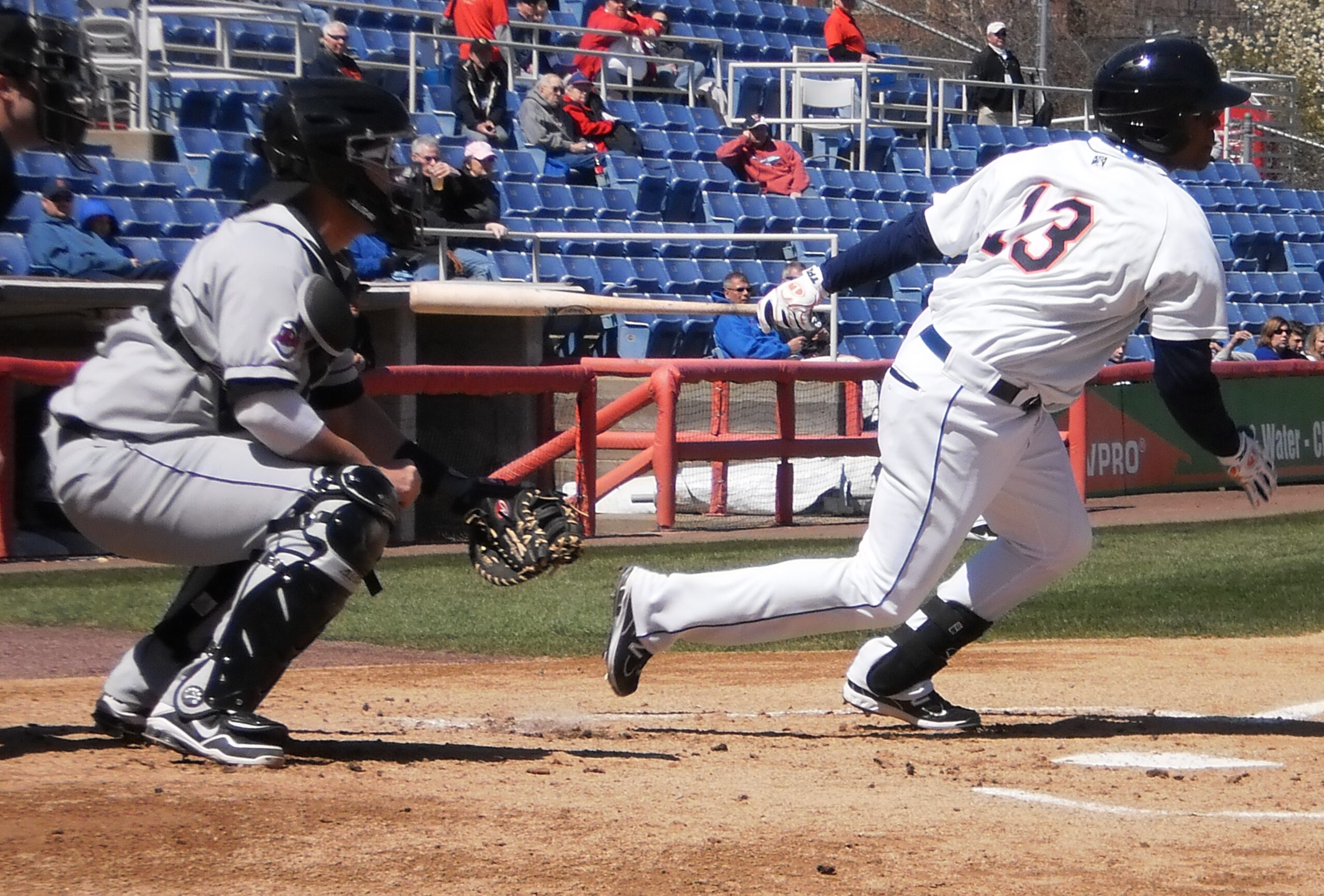 Not only was I about to enjoy a AA B-Met baseball game under a sunny, and cold early April sky, I was about to hit the perfect storm for chatting with players and getting some great photos to post here on the website. You can click on any photo to supersize it.