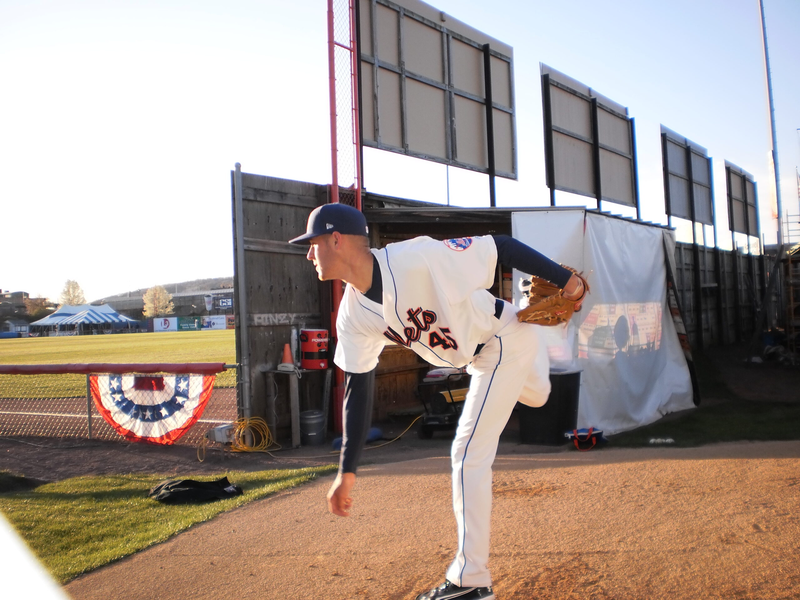 As I dropped off to sleep that night, I thought about what a great day I’d had. Getting to meet the guys I interviewed over the winter, and talking to coach Natera. It was a good first day on the road. But I had no idea what was about to happen to me the next day. Little did I realize that the following day I would get the opportunity to have conversations with: Collin McHugh, Mark Cohoon, Greg Peavey, Rob Carson, Josh Edgin, Brad Holt, Edgar Ramirez, Armando Rodriguez, Juan Centeno, and Zack Wheeler. Not to mention all the fabulous photos I would get of the players working out, hanging out, signing autographs, and throwing bullpens. And the great live-action shots I got during Saturday’s game.