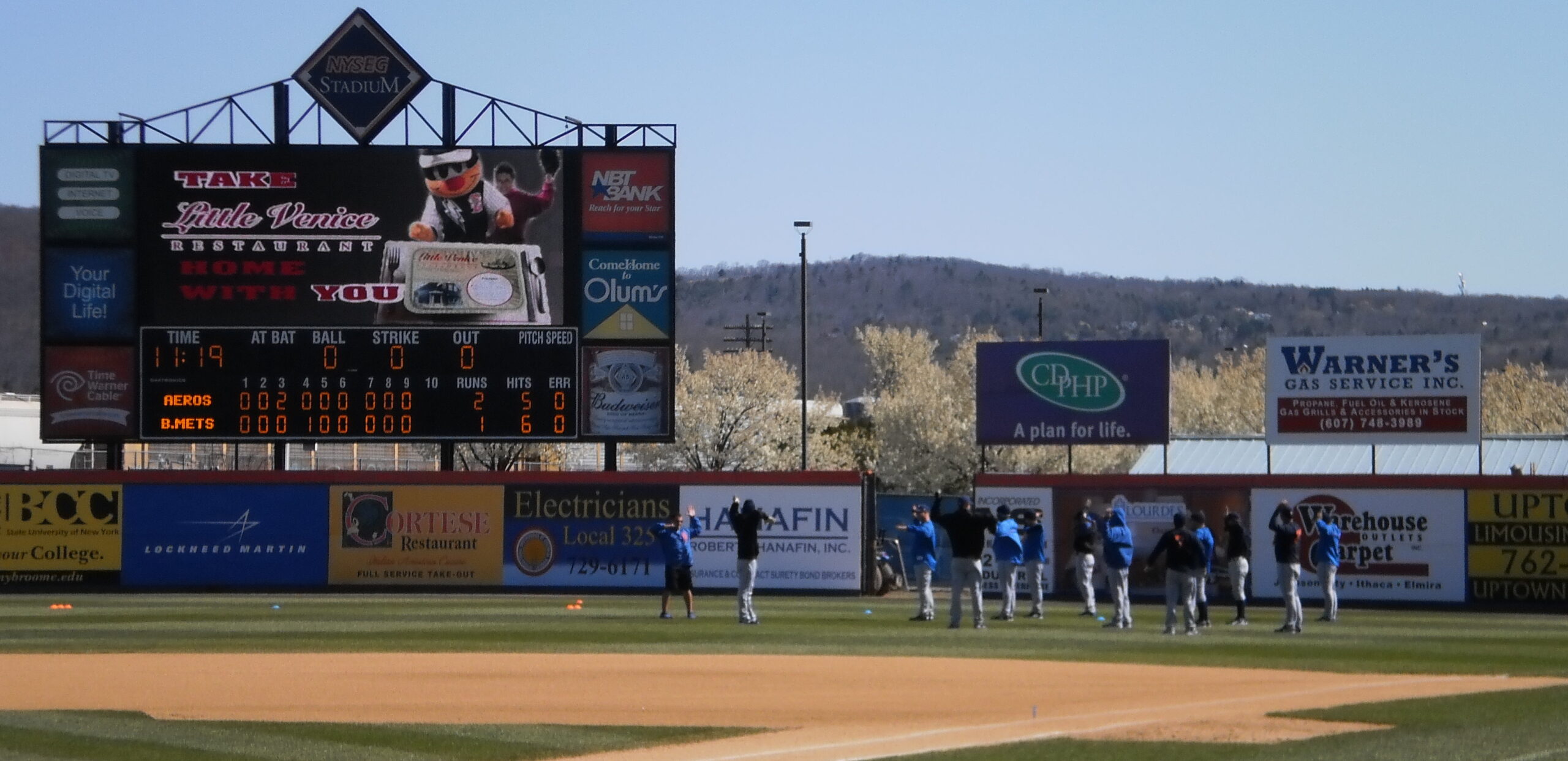 In the words of Mark Twain, “The coldest winter I ever saw was the summer I spent in San Francisco.” An excellent thought but obviously Mr. Twain never saw a baseball game at NYSEG Stadium in Binghamton, NY on a Friday night at the beginning of April. Wow, it really gives new meaning to the phrase “chilled to the bone” I can tell you that much.