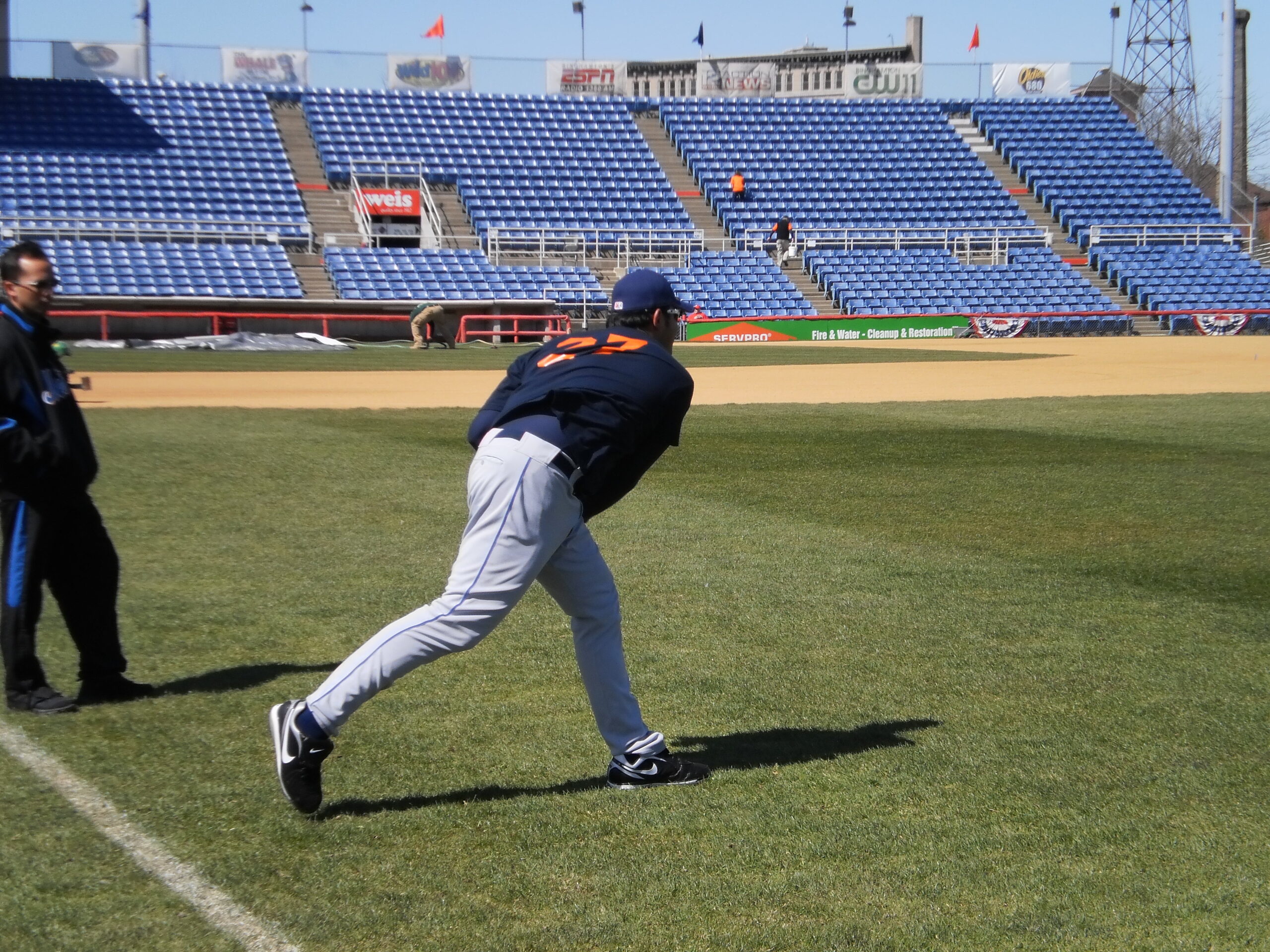 I introduced myself to some of the players I had interviewed this past winter on MMO. I met Collin McHugh, Josh Edgin, Rob Carson, and Darin Gorski right off the bat. When Gorski said to me, “how you doing?” I simply answered, “I’m freezing my a$$ off, how you doing?” I also chatted a bit with Jefry Marte and hitting coach Luis Natera.