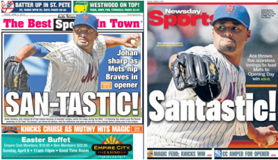 Johan Santana pitched 5 great innings in his first start back from surgery and an RBI single in the sixth put the Mets on the path to an Opening Day victory.