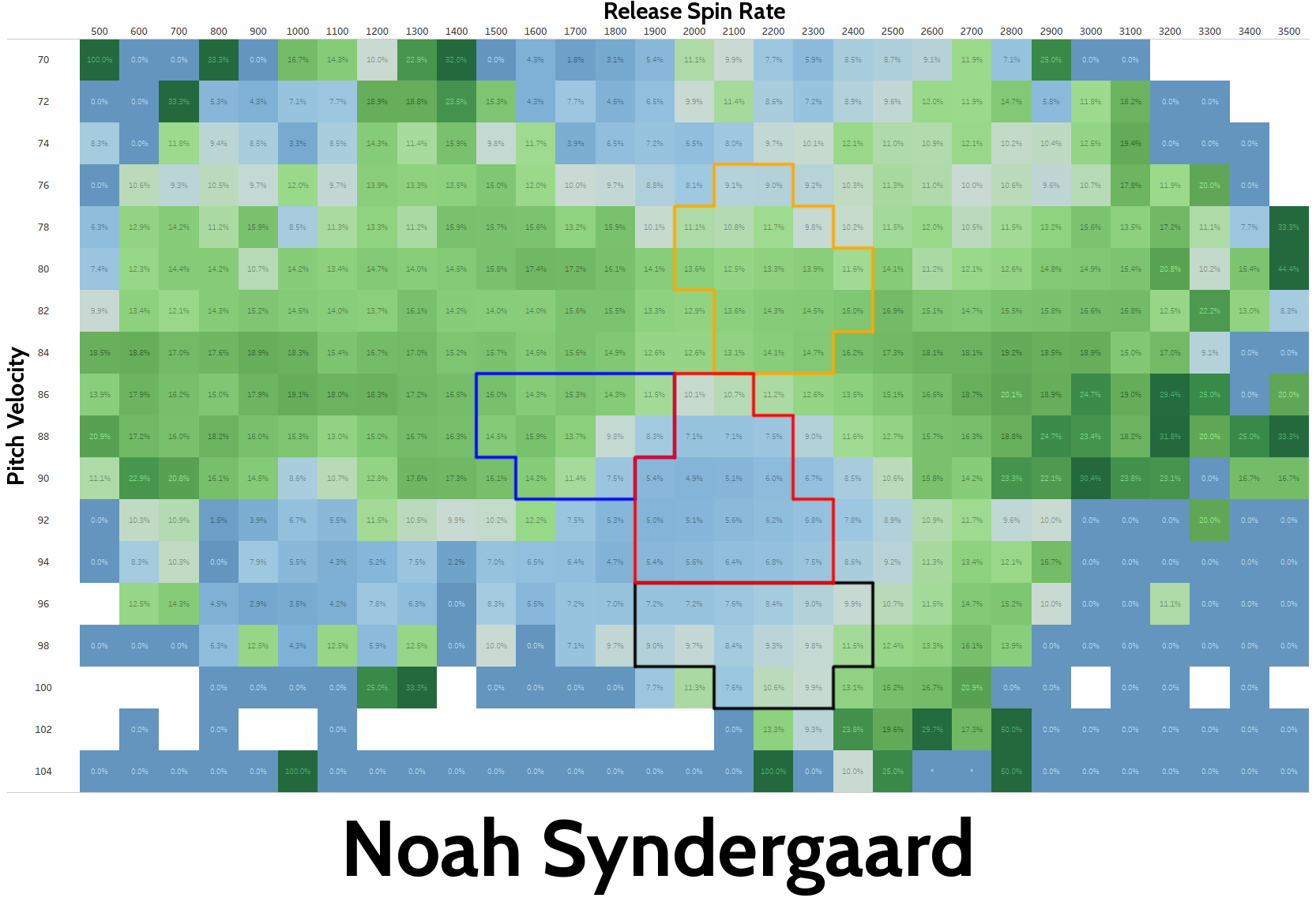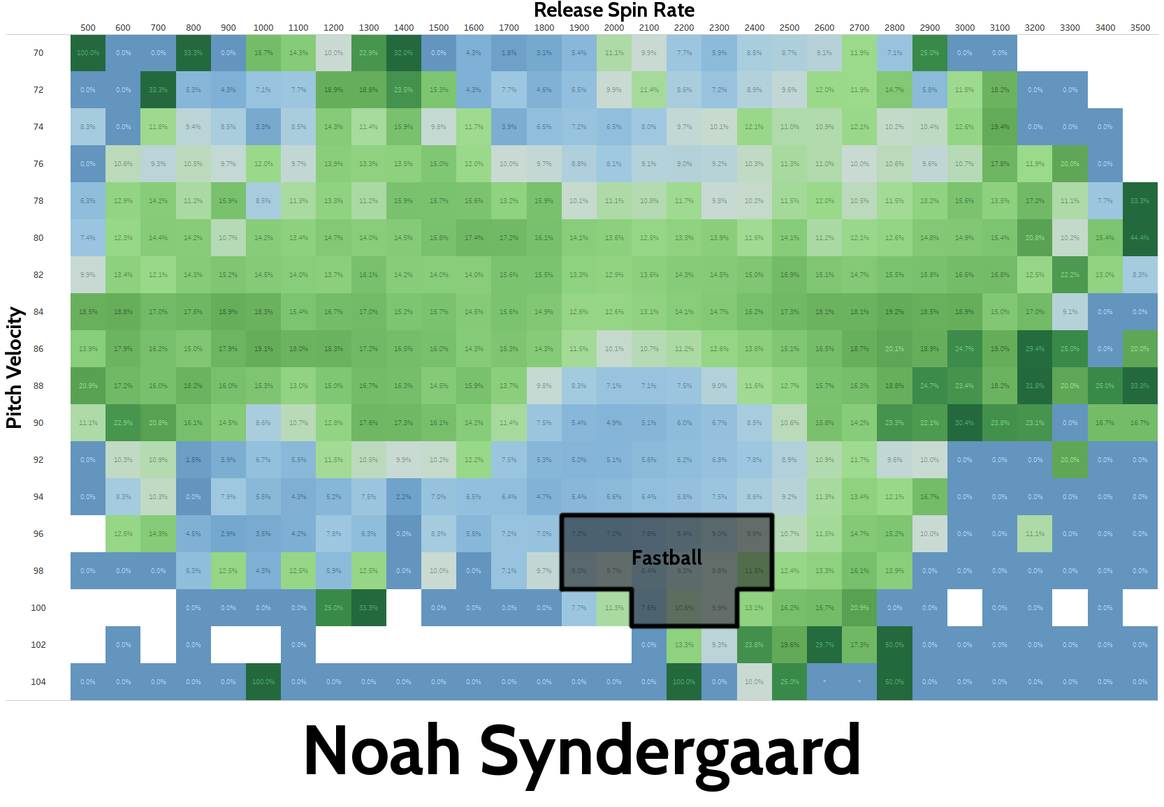 At the moment, it appears, Noah is focusing on velocity. Which is unfortunate. The data suggests, if anything, spin rate would be a more valuable addition.