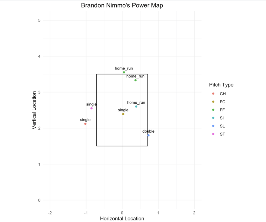Another strength as of late for Nimmo is that he is making contact with pitches in the zone. Five of his seven hits came from pitches that were located in the zone. He managed to do all this with an improved BABIP.