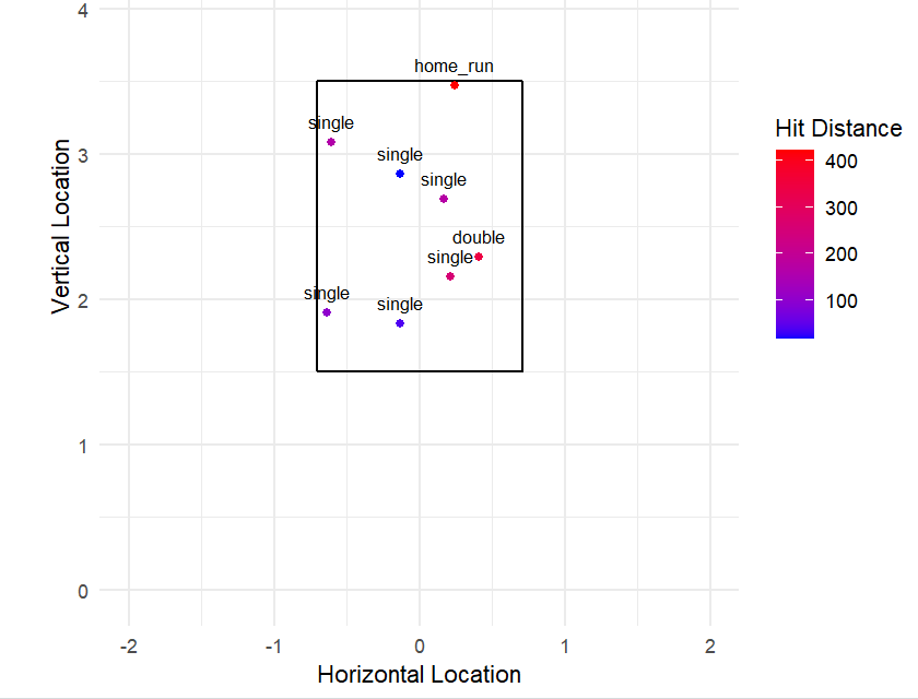 Analyzing his hitting profile, one can see that Alvarez has done a remarkable job at covering the whole plate. Looking at his plate approach for last week below, we can see that Alvarez has been making contact with pitches all over the strike zone. He is taking what the pitchers are giving him and producing. Specifically, he has totaled for six singles, a double, and a home run. The singles were sprayed across the strike zone, and his home run was located up-and-away in the zone.