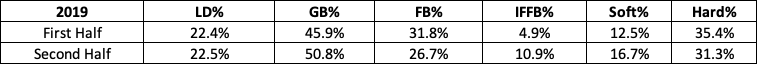 Check out how his batted-ball profile changed from one half to the next: