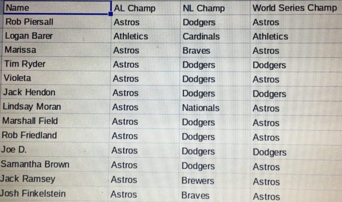 So, with that being said, if our options were to come down to the Dodgers/Nationals, Braves, Yankees, and Astros, who do you pick from there?